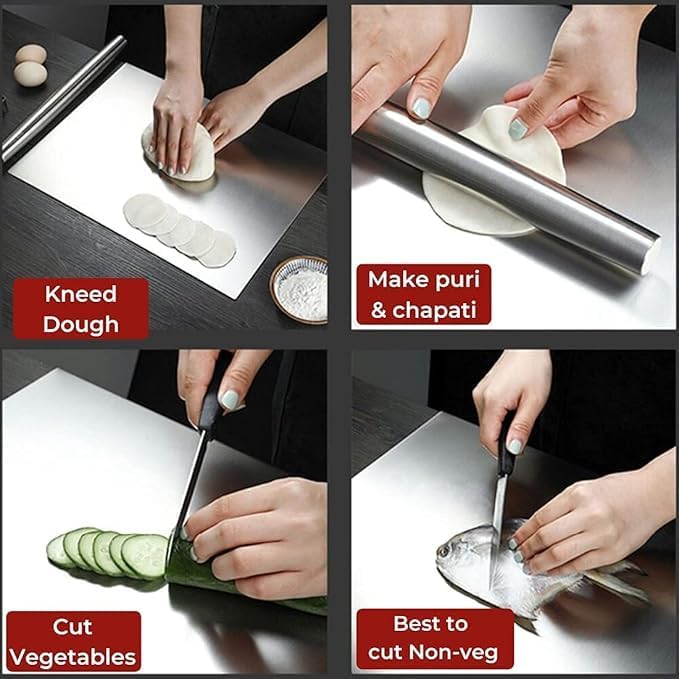 304 Stainless Steel Chopping Board with Lip – Hygienic. Durable. Mess-Free.