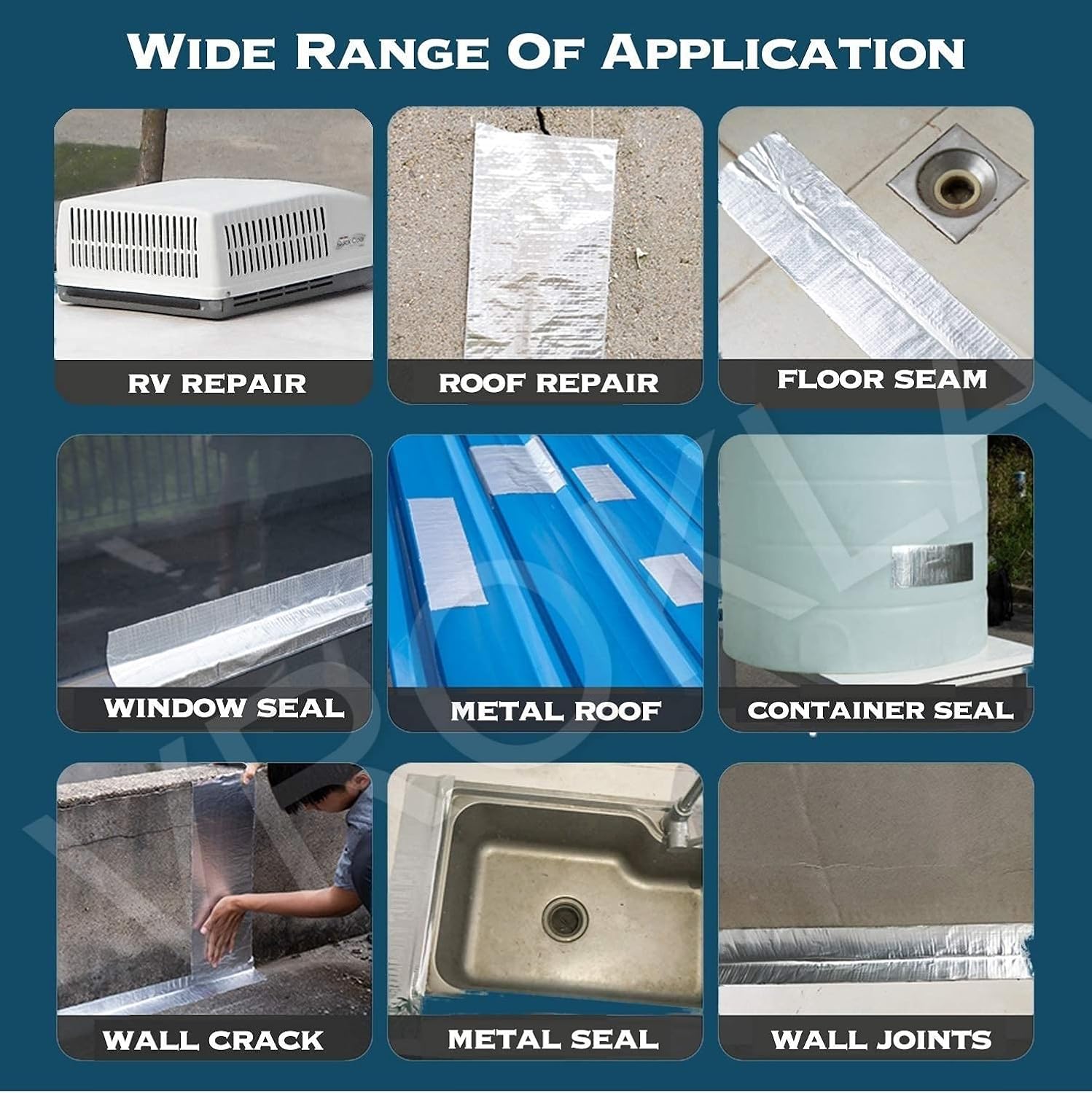 This professional-grade butyl rubber waterproof tape bonds instantly to metal, concrete, plastic, glass, or tiles — even when damp.